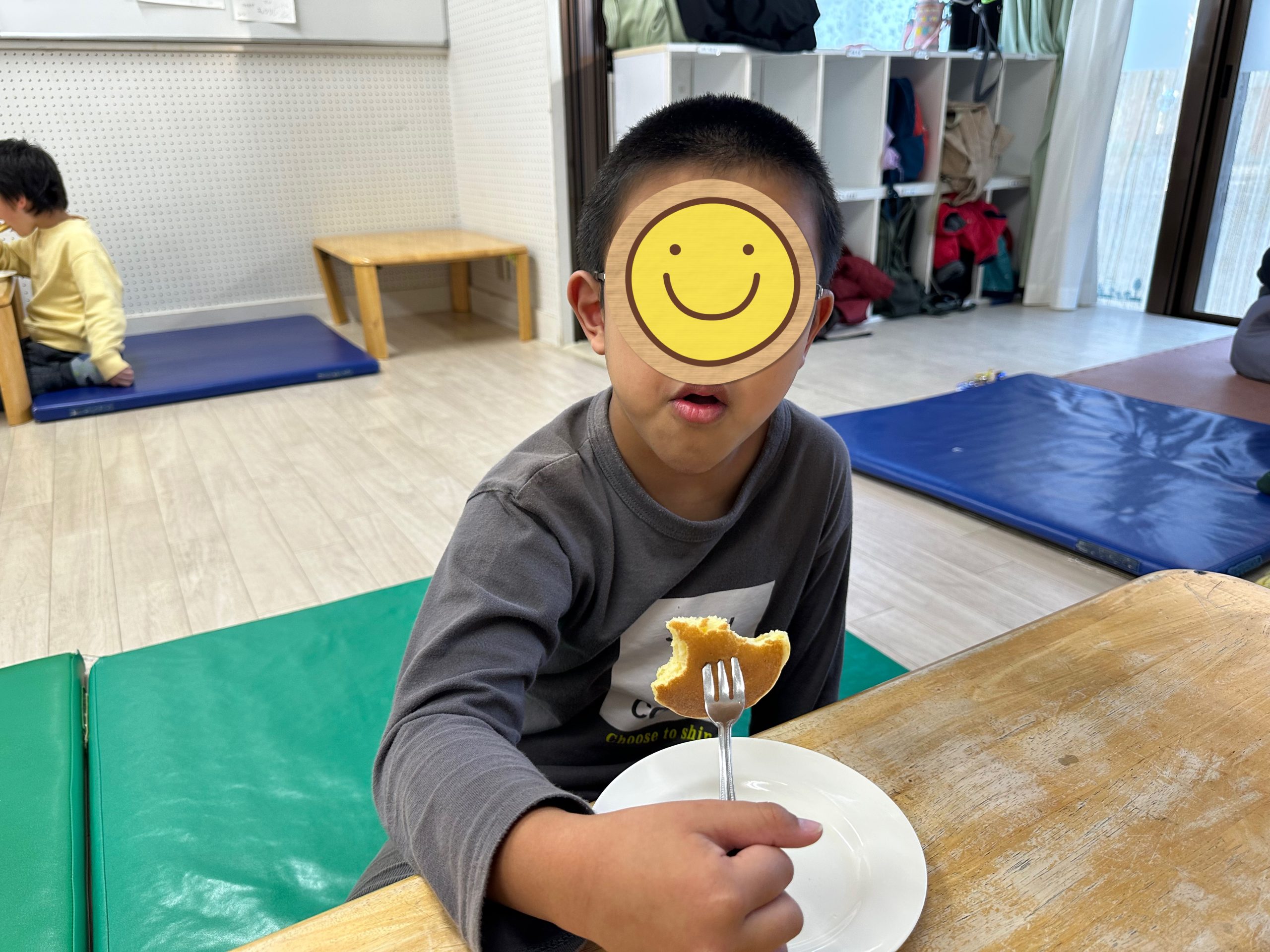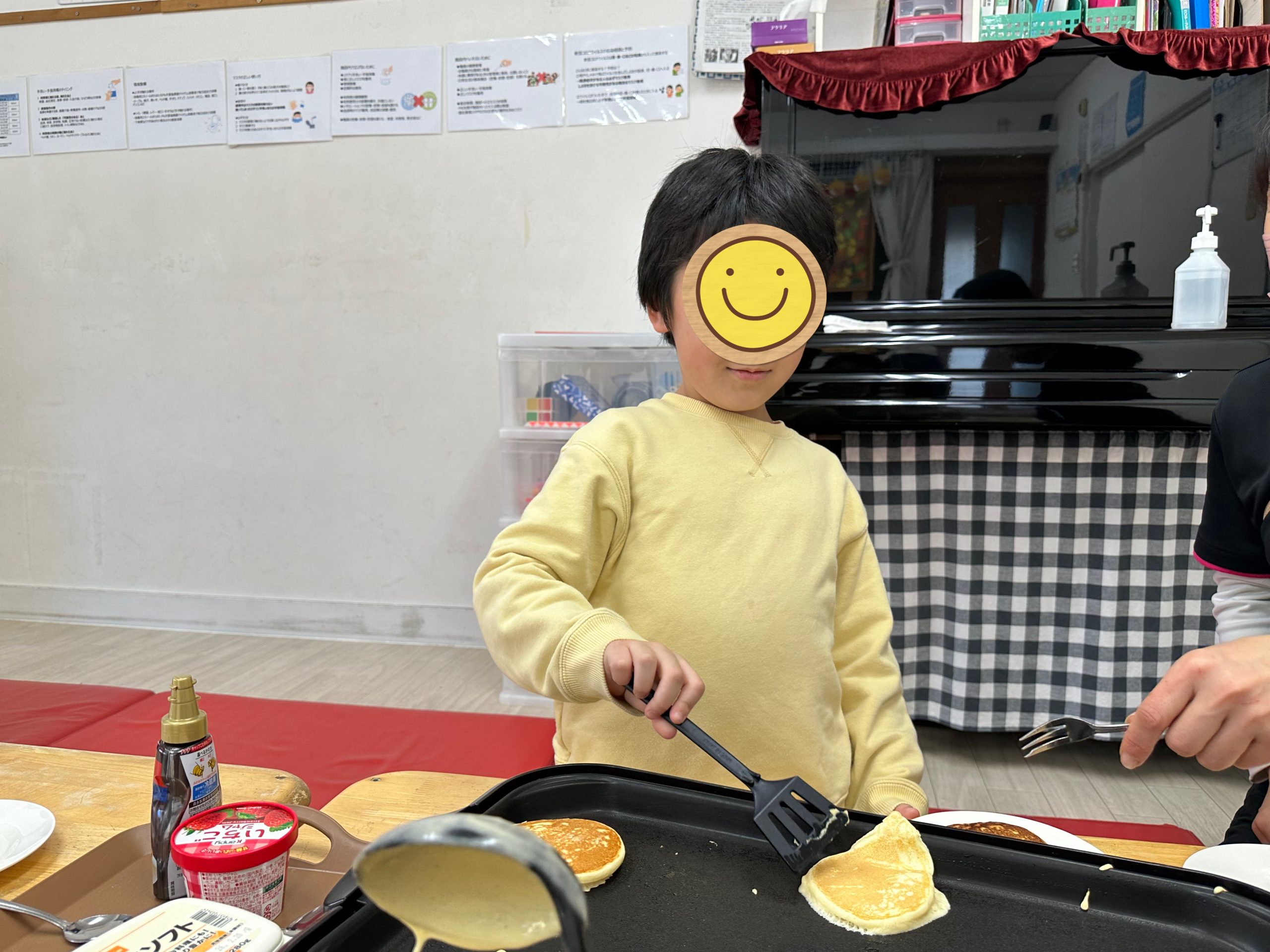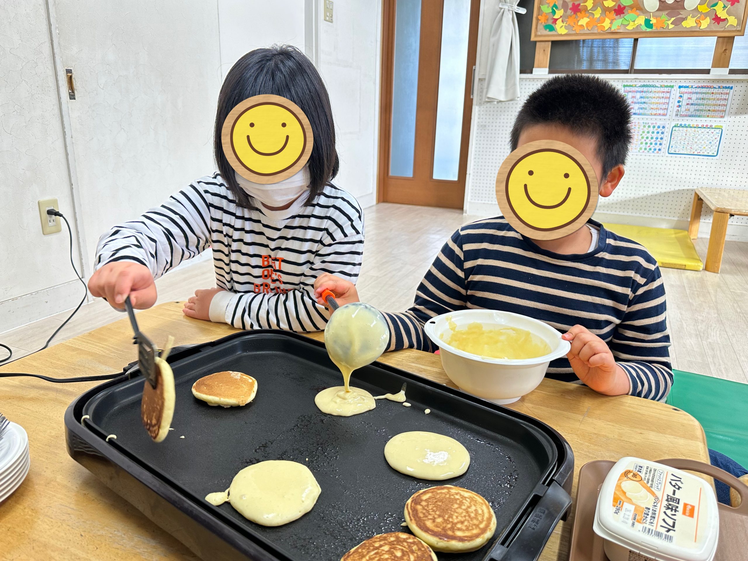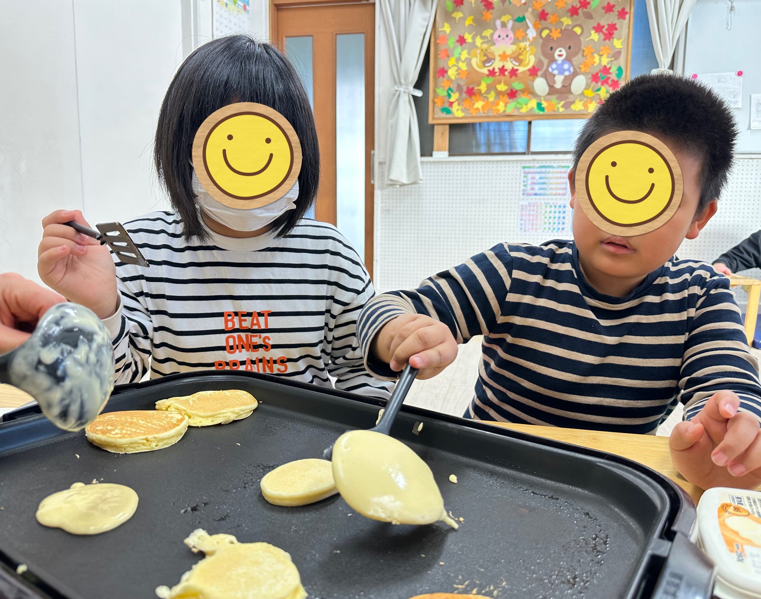 子どもたちのリクエストで、おやつはホットケーキ作りをしました。