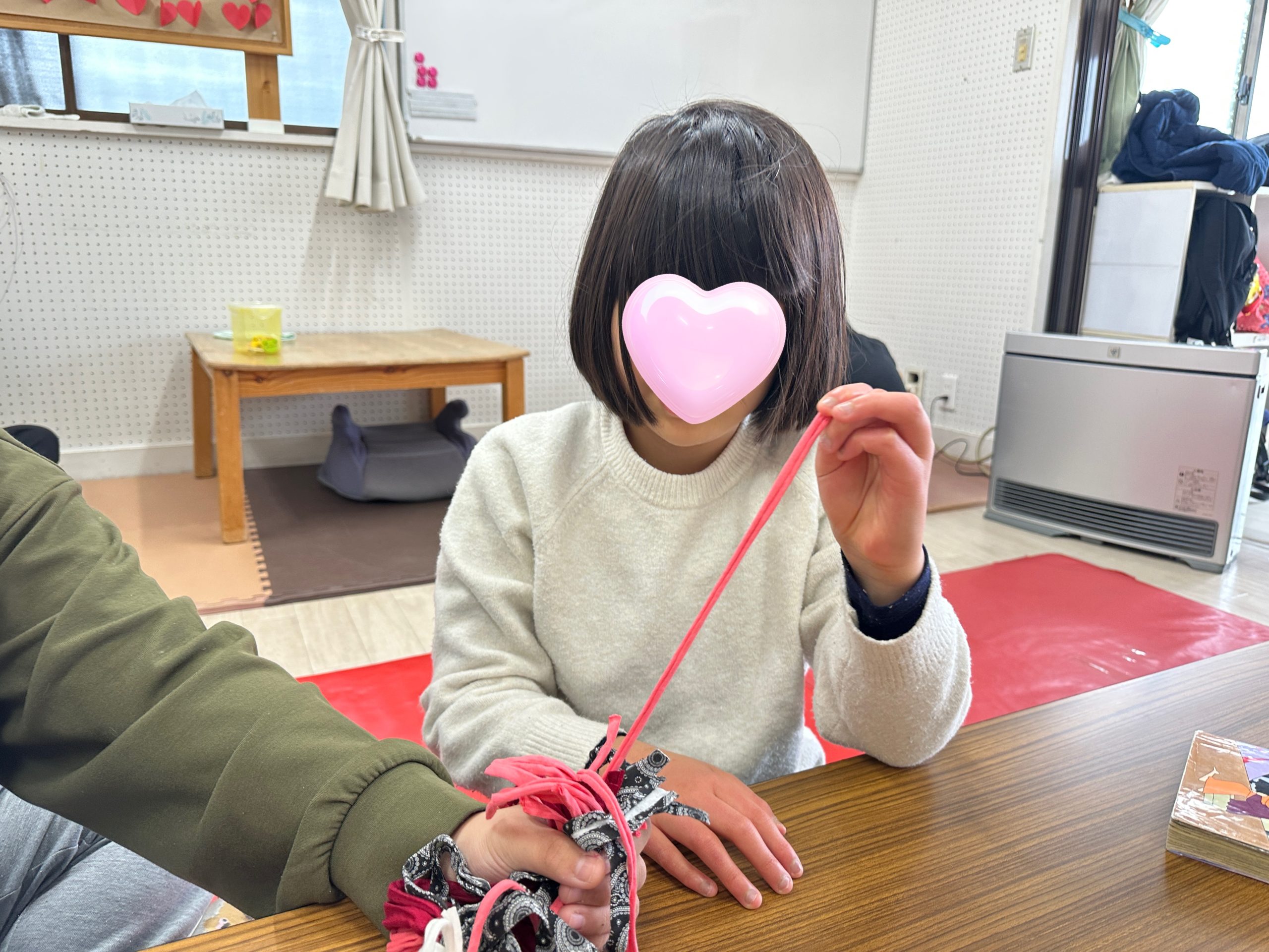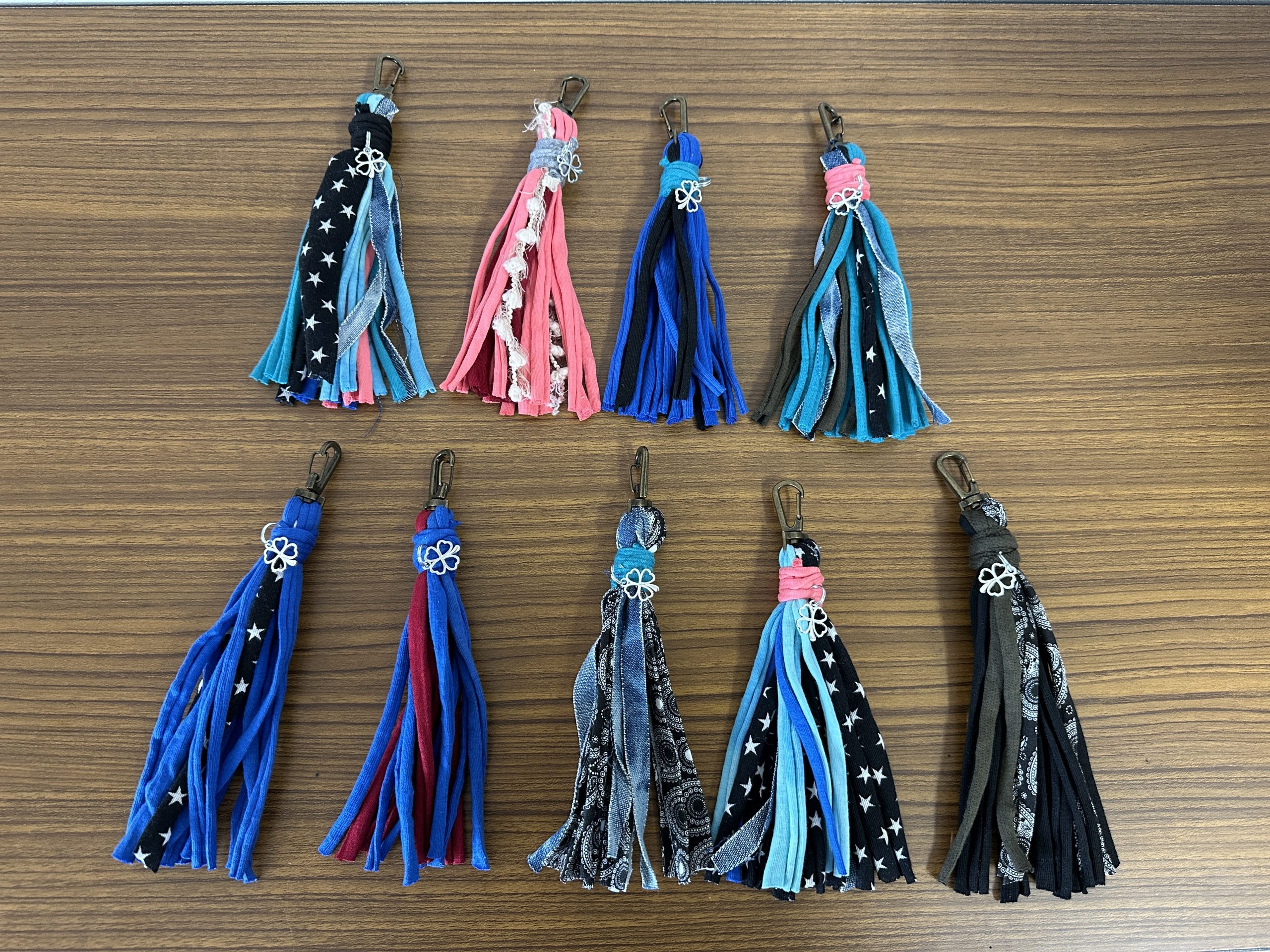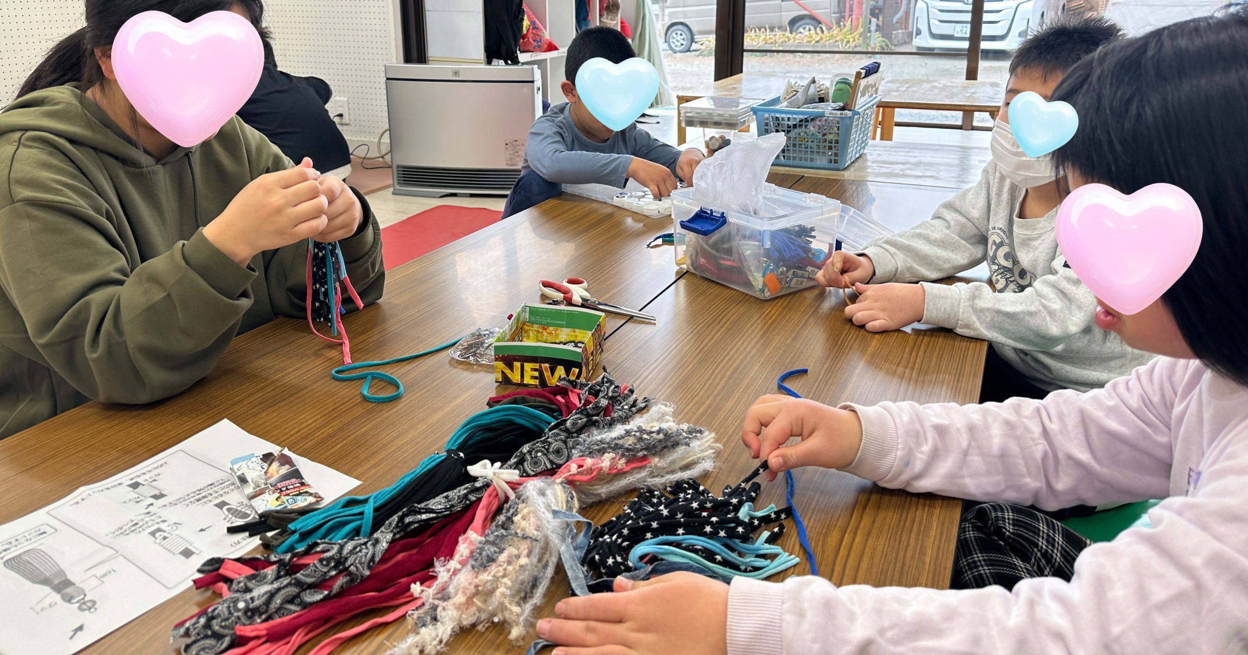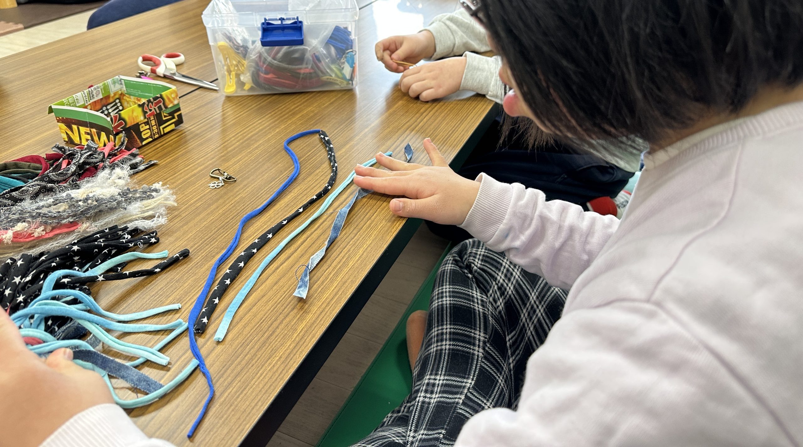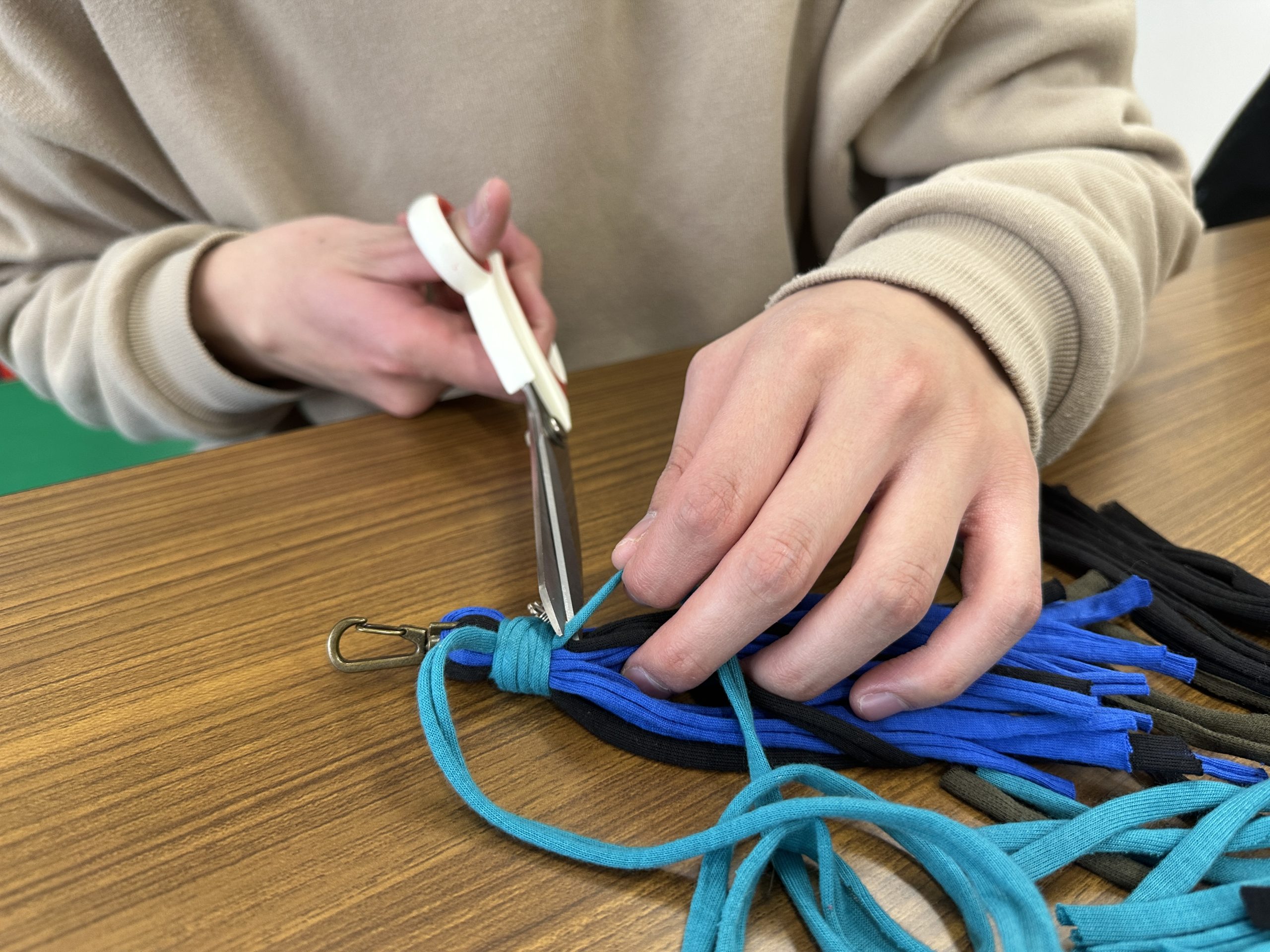 今日はTシャツヤーンを使って、チャームキーホルダー作りをしました。
