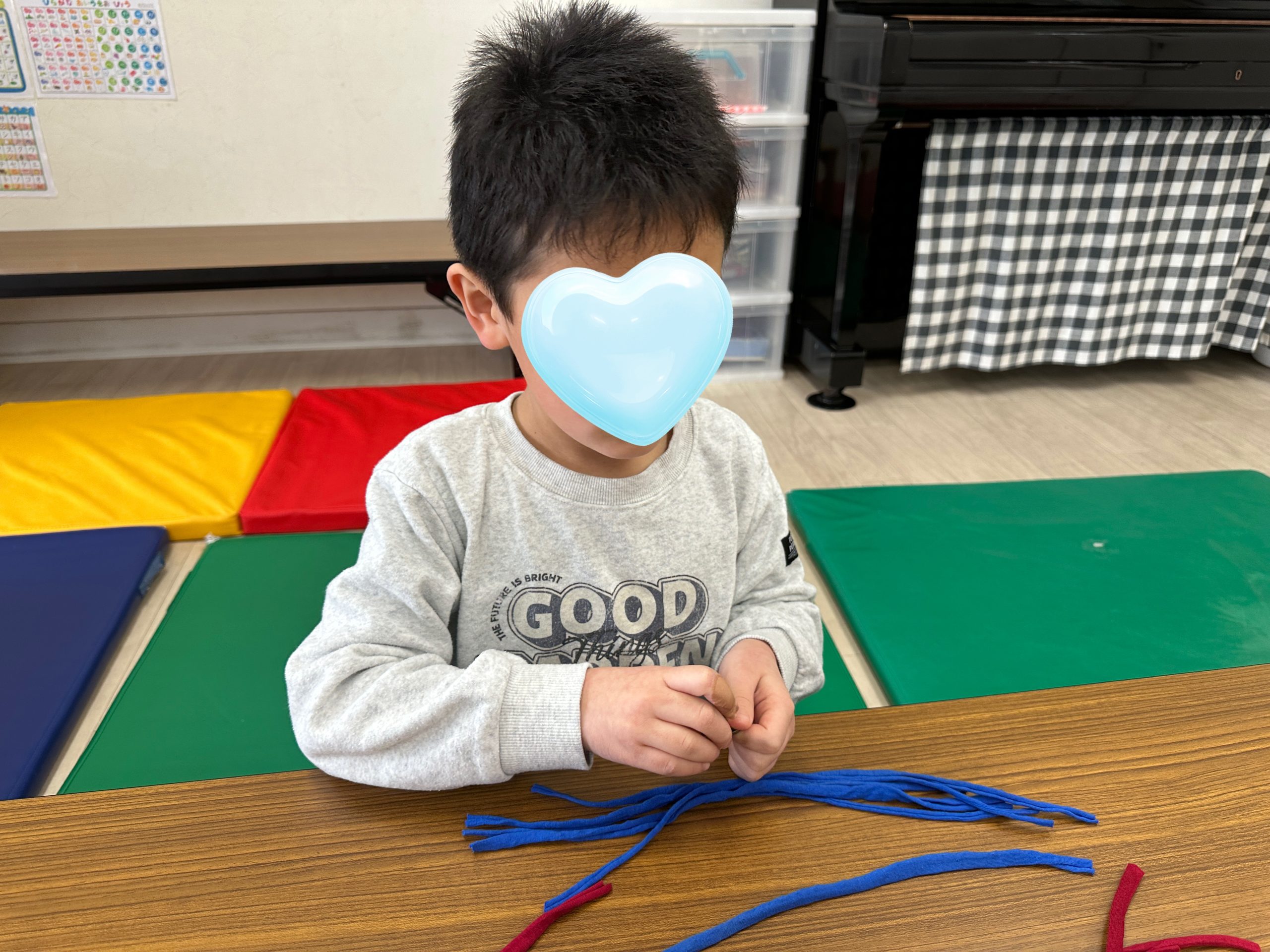迷わず決められる子もいれば、見本と同じ色を手に取る子、