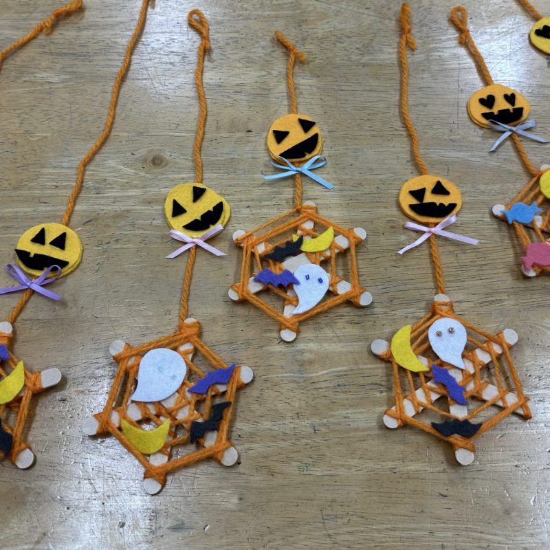 10月最初の土曜日、 今日はハロウィン制作をしました。 思い思いにフェルトを選んで貼り付けてもらいました。 ボンドをきれいに伸ばして、 お化けの目はビーズにしました。 ハッピーハロウィン! 完成です。
