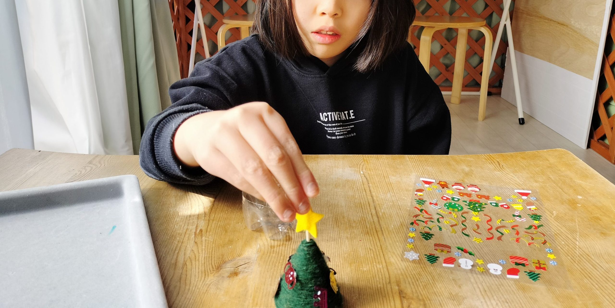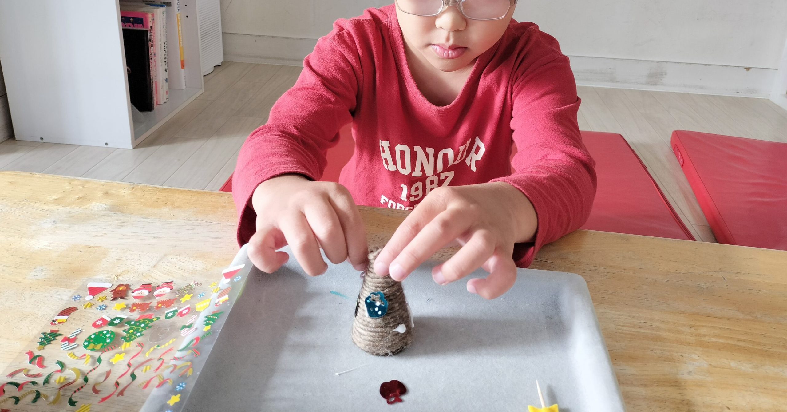 子どもたちは飾りやシールを真剣に選んでいました。